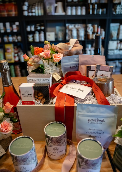 Holofchak and her team put together a gift of the woman’s favorite wine, a variety of chocolate, some Piedmont Pennies cheese straws and Elise cashews.