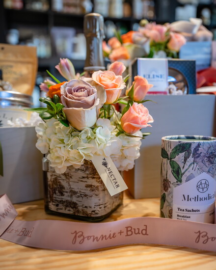 She started with flowers from Nectar, the local florist she still uses, and put together Moscow Mule kits, complete with copper mugs and ginger beer.