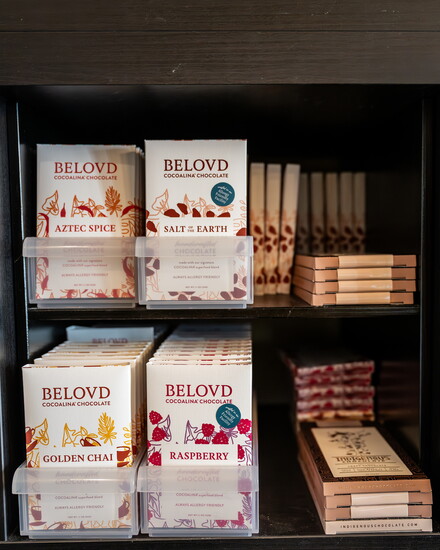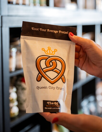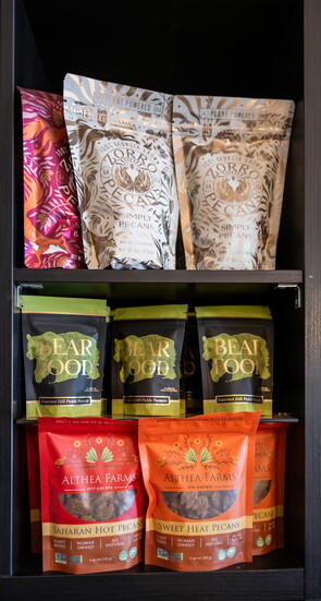 She pays tribute to her family’s Southern hospitality by offering primarily local products. The shelves at Bonnie + Bud are lined with not only Piedmont Pennies, but pretzels from Queen City Crunch, popcorn and peanuts from Bear Food in Matthews, and more.