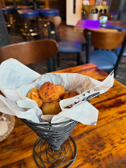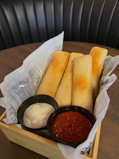 Additional food options are chilled shrimp, jalapeño mac-and-cheese bites, crispy bread sticks with marinara or ranch, ham/swiss paninis plus spinach and artichoke dip.