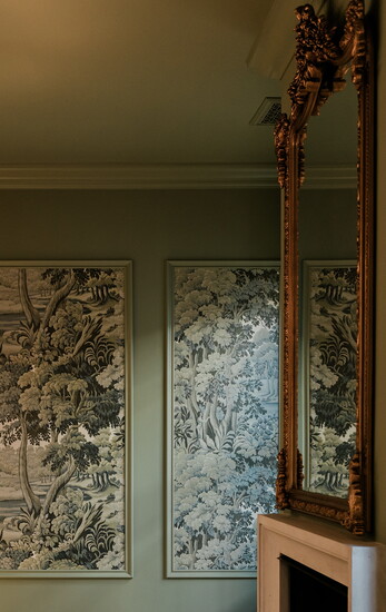 But it is the House of Hackney Plantasia wallpaper in the formal dining room in which the whole house was designed around. Landon states, "All elements including paint colors, stains, and trim profiles were chosen around a particular scene displayed in the formal dining room wallpaper." House of Hackney's Plantasia pattern is inspired by ancient woodlands and botanical illustrations, representing old world design and reverence for the natural world. Much like the thought process behind Lendon itself, a community with historic design that embraces nature.