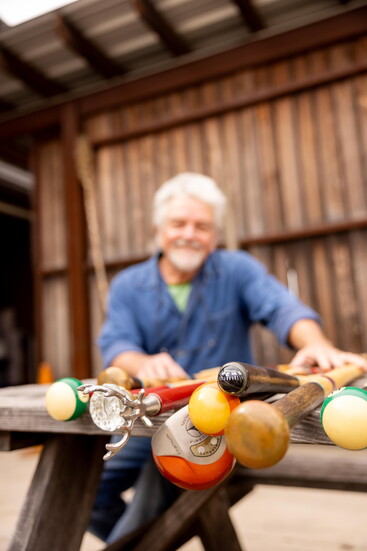 You can also find a small collection of these walking sticks at Desert Door in Driftwood. But the sale isn’t the point. Every dollar Giles earns goes right back into making more, so he can continue giving them away. His happiness lives in the giving.