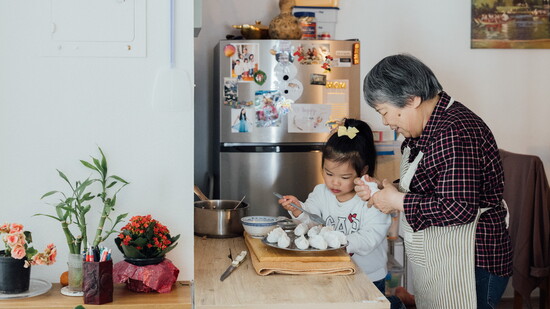 Her first memory of cooking with me is when I moved out of the house, I asked her to show me how to make her congee. Congee is pure Chinese comfort food and it was something I wanted her to teach me. Her second memory is when my sisters and I were young, my mother would spend the afternoon with us making scallion pancakes. She would show us how to make the dough and then have us roll out all the pancakes with a rolling pin. We would make so much and have piles on top of piles of pancakes to eat. She liked watching us play around with the dough and enjoyed knowing she wouldn't have to cook so much for the remainder of the week.