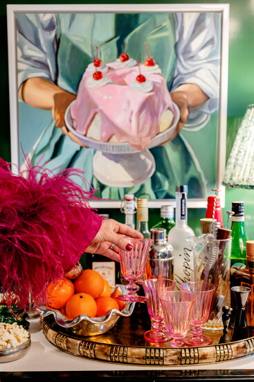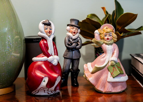 No details are spared. Take, for example, Anderson’s interpretation of “9 dancing ladies” from the song. A kitschy pink and black vase from Etsy, featuring a woman who looks like she could be doing the can-can, is perched atop a dark-green glass stand holding golden rings to represent that verse in the song.