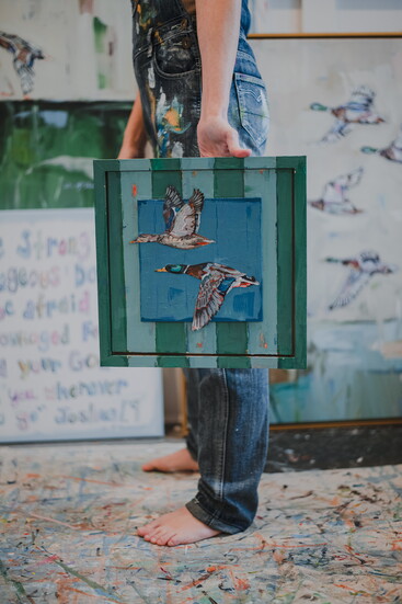 “I figure men usually like duck paintings, but I wanted to make them in a way that women would like them too. So you’ll see a lot of baby blue, or hints of pink.”