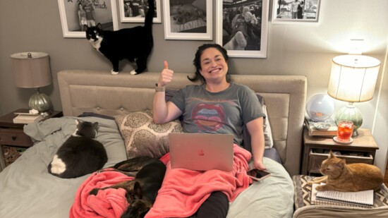 SR: Growing up I could only have pets without fur or that could be kept outdoors because my dad was allergic to fur. I had turtles, frogs, birds, mice, chickens, ducks, bunnies, and lizards. The night I got into my condo in Stamford I went straight to the Animal Refuge League in Westport and asked for the cat that had been there the longest and took her home. Her name is Nala and now she's 13 and the leader of the house. Currently, I have 6 pets in total, 4 cats (Nala, Simba, Kiara, Sarafina) and 2 dogs, Peach and Prudence.
