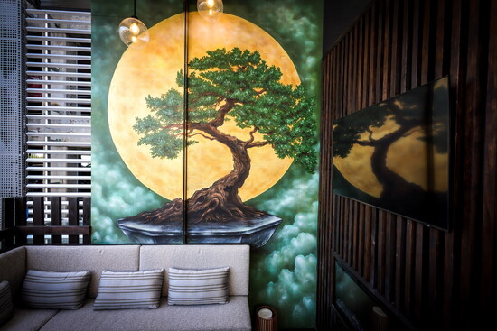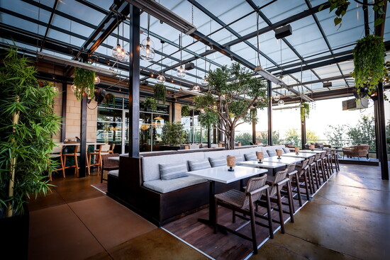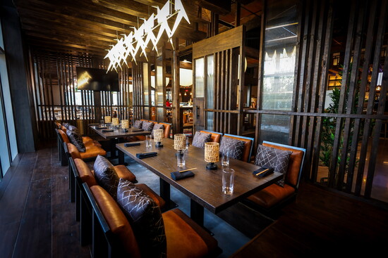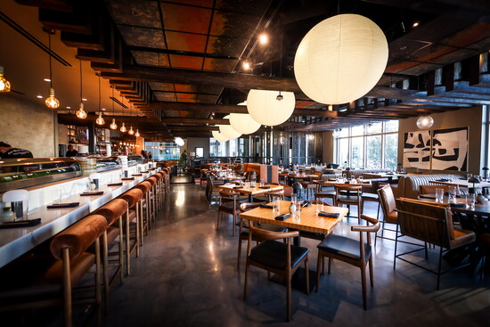Spread across 6,000 square feet of indoor and outdoor dining spaces, design features at Musume at The Star include a private Tatami room with sunken seating for intimate 12-person gatherings, two bars (inside and outside) with bar seating plus lounge space, a nine-seat seat sushi bar, custom sake displays, zen lighting, moss and tree installations, “floating” banquettes, sake millwork, warm wood accents and chiseled stonework. Thematic restrooms — Midnight in Tokyo, Sensual Sento, and Animal Instincts — also were integrated to add an element of surprise and intrigue.