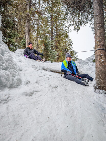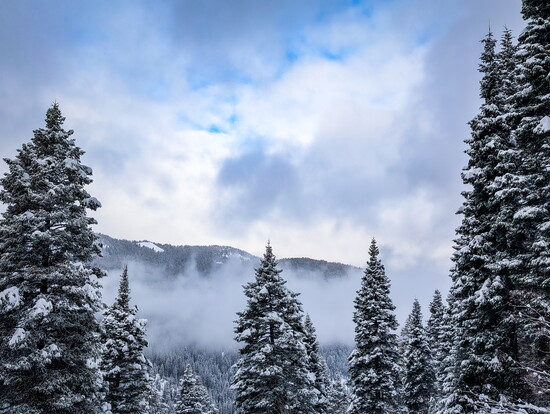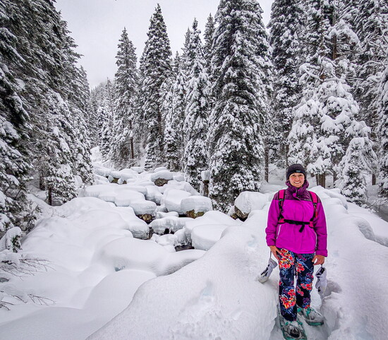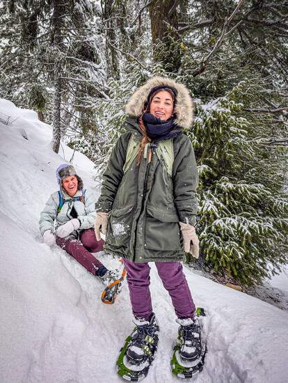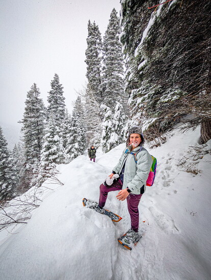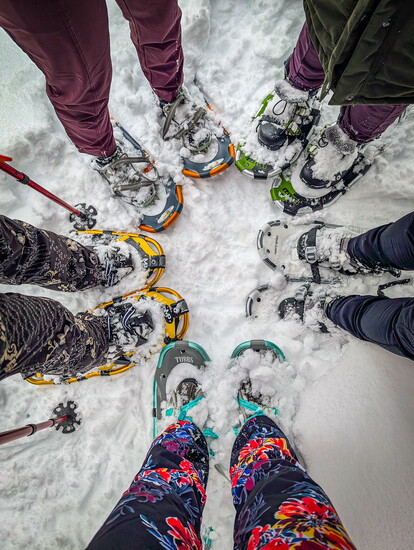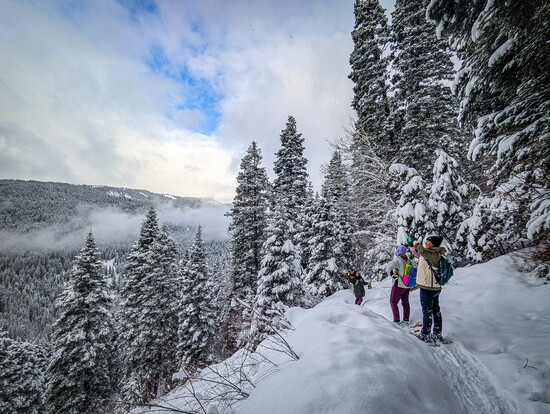 The next day, our group split up for separate snow adventures—some went skiing at Brundage, while the rest of us opted for magical snowshoe trek. The frosted evergreens glistening around us as we descended in the forest, hearing only the soft crunch of snowshoes beneath us as we gave ourselves “snow facials” and soaked in the beauty of the winter landscape.