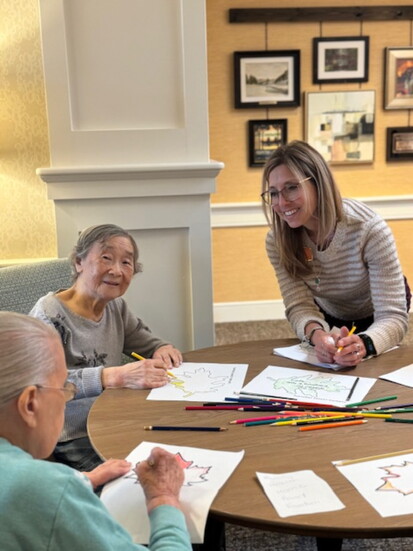 Barbara Jones, CALA, is the Resident Care Coordinator at Sunrise of Mountain Lakes. It’s her job to facilitate all aspects of life for memory care residents to ensure a high quality of life. She leads programs that stimulate cognitive function and social engagement. She explains the importance of the partnership between residents and their families. “You can help us understand Mom better, because we’re just getting to know her—likes and dislikes—and all her other preferences. That’s where the partnership comes into play.”