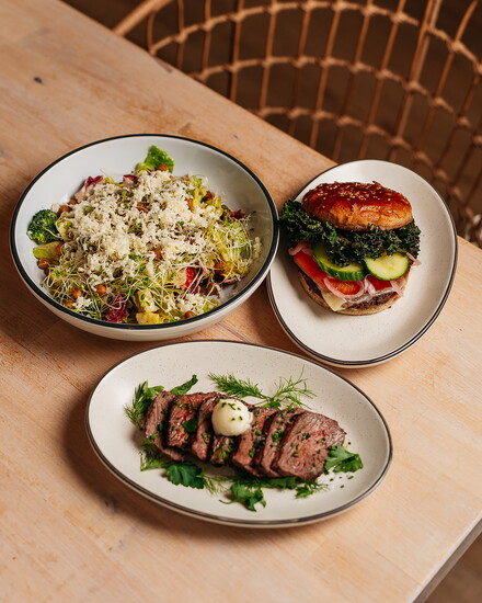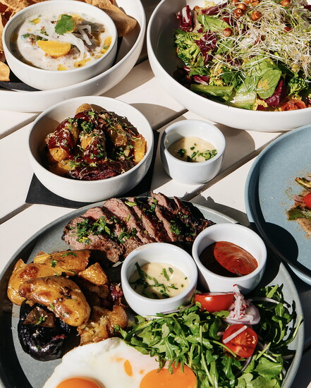 Guests can enjoy weekday breakfast, nourishing bone broth, or vibrant smoothies made with housemade cashew milk. The menu features wholesome bowls, grass-fed Wagyu steak, and sustainably-sourced salmon, along with ceremonial-grade matcha, creative lattes, and adaptogen-rich drinks. Weekend brunch brings neighbors together for fresh, seasonal dishes, while Westlake weekday happy hour from 3–5pm is perfect for relaxing with friends.