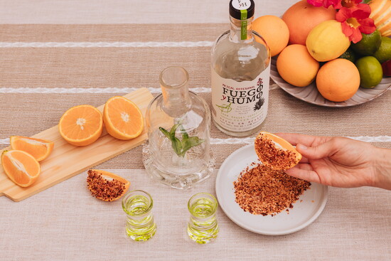 “We’re all about the traditional way that you drink and enjoy mezcal, which is neat,” says Elliott. When the Fuego Y Humo team educates local businesses (like Sama Sama, Augie’s, and Los Agaves) about their mezcal, each varietal—Espadin, Wild Tobala, and Wild Tepeztate—is treated like a wine pairing.