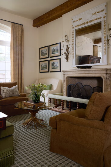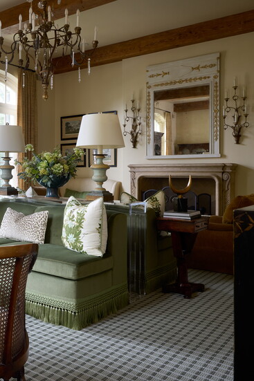 That philosophy comes to life in a recent project centered around a French-influenced residence designed by Tulsa architect Jack Arnold. “Jack Arnold is a pro at creating timeless spaces. This house is 25 years old and has a unique feel that will stand the test of time. The use of old beams in five spaces adds to the old, European energy.” Rather than overhaul the architecture, Klawinski saw the home as an opportunity to layer, enrich and honor what was already there.