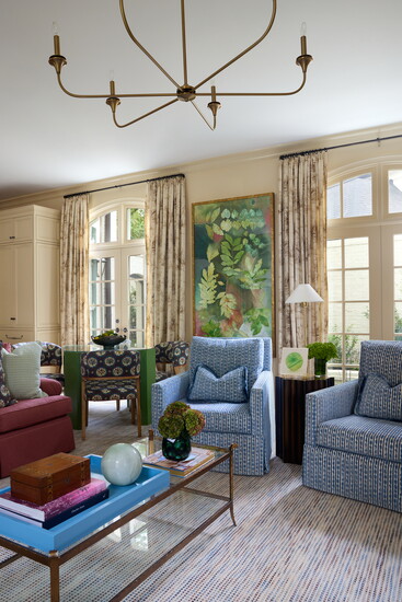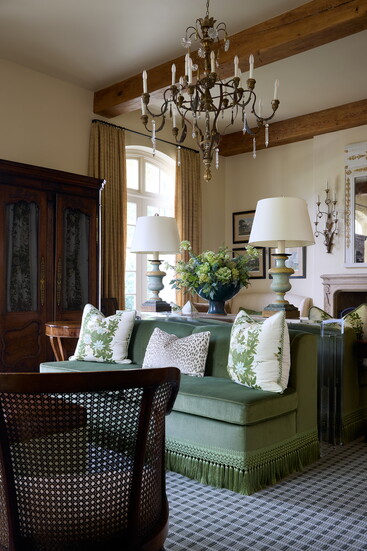 When it comes to where to invest, her advice is unwavering. “Buy good, custom drapery rods even if you hang inexpensive drapes on them,” she says. And, “make sure all of your furniture sits on your rug.”