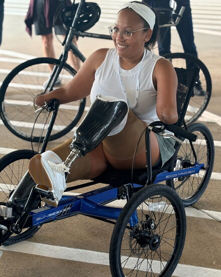 The road from the hospital bed to rebuilding her daily life has been anything but linear. “Slow,” she says with a laugh. “Very, very slow. And I’m not a patient person.” Insurance approvals, outside funding, fabrication of prosthetics, learning to use her body in new ways...each step required weeks or months of waiting. But the journey also opened her eyes to an entirely new world.