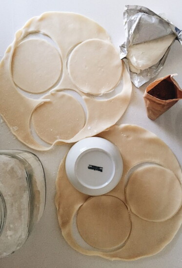 Buy one of those roll-out refrigerated pie crusts and use a 5-inch bowl to cut out little circles.