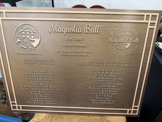 Before the evening’s big reveal, Mayor Kurt Wilson spoke about the importance of preserving historic landmarks. Then the unveiling of a plaque honoring the generous donors who will Be A Part of History, those who gave at gold sponsor level or higher at the 40th Magnolia. The plaque will be mounted on the brick wall of Osage Terrace.