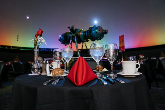 The evening kicks off with a cocktail hour with an open bar and passed hors d'oeuvres. Guests can eat dinner at a sweetheart table inside the Strasenburgh Planetarium, followed by a presentation adapted from The Sky Tonight. “I had a guest on a waitlist about three years ago. They’ve come back every year since,” says Dan Kalin, senior manager of events and hospitality.