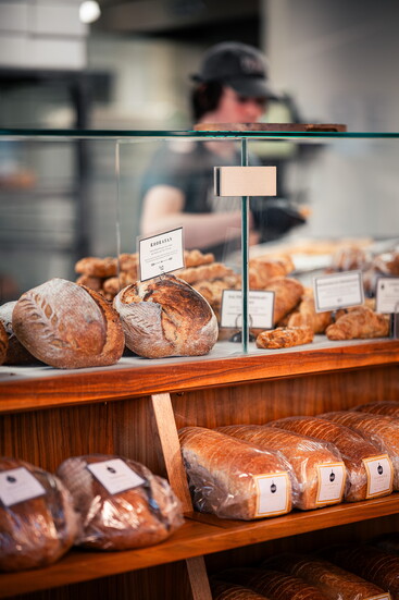 Proof is built on a simple promise: real bread, made the old way. No shortcuts. No commercial yeast. Just flour, water, salt, and time. Every loaf begins with heritage grains grown by local farmers, stone-milled in-house, and naturally leavened with Harriet, their 15-year-old sourdough starter.