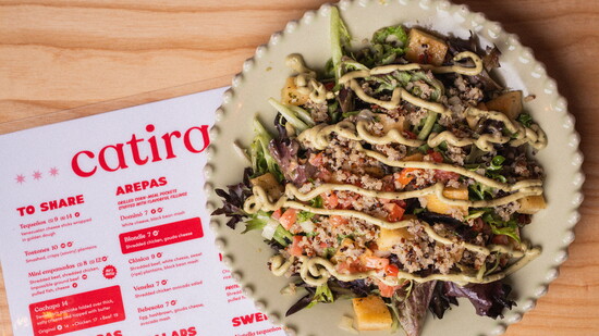 Catira brings the vibrant flavors of Venezuela with dishes like the Reina Pepiada arepa (the “Veneka”), featuring creamy chicken and avocado, and the Pabellón Criollo (the “Classic Plate”), a hearty plate of shredded beef, black beans, rice, and sweet plantains. Their sweet corn Cachapa is a fan favorite, folded over melted cheese for a comforting bite. Pair your meal with a refreshing Polar beer or a tropical cocktail made with Venezuelan rum. With its lively atmosphere and authentic cuisine, Catira offers a warm, communal dining experience that feels like a celebration of family and flavor.
