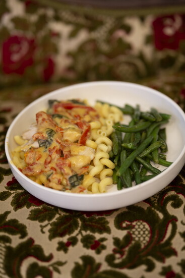 One of my all-time favorites, which I could eat every time I visit Nosh, is their Tuscan Chicken. The pasta has a spiral, “corduroy” feel to your tongue that holds up to the chicken breast and the thick, creamy sauce full of sun-dried tomatoes and spinach.