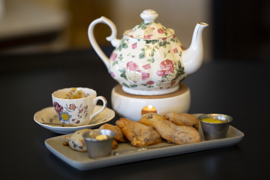 The day we visited for lunch, we opted for a pot of peach mango hot tea—you can also get it iced. The tea was smooth and subtly fruity, with cream and sugar added all around. If you order the scones, they are not hard or dense like traditional scones. The blueberry and cranberry scones were soft, warm and bursting with flavor that only enhanced the clotted cream and lemon curd that accompanied them.
