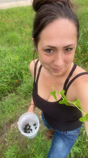 While she doesn’t discourage people from foraging on their own, she does warn, “Foraging can be very dangerous,” adding, “It’s important to know your surroundings and be very aware.” She says she usually wears heavy jeans and proper boots and that long sleeves are a great idea even when it’s hot out because you may encounter things like poison ivy, which she says are a dewberries best friend, spiders, scorpions, sinkholes, wildlife, deer hunters and animal dens covered by grass. She also says there are rules & protocols to follow such as: public land is fair game with some exceptions, never cross a fence line, respect the land and leave no trace of your presence. Also leave some for the wildlife / plant reproduction. She shares that while she makes a point to always be friendly and respectful, “In mushroom foraging, things are very secretive and a little cutthroat at times. If you come across another mushroom hunter, it’s not likely that they will share any information with you, they may not even acknowledge you.”