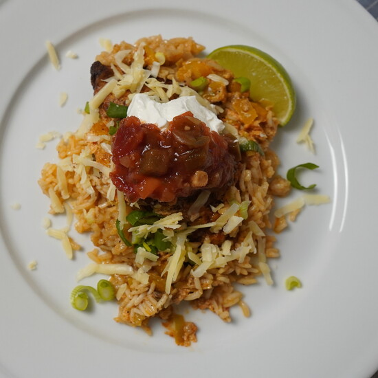 · Remove from the oven. The rice should be tender and most of the liquid absorbed. Let the dish rest for 10 minutes. Finish with lime juice, add toppings, and enjoy.