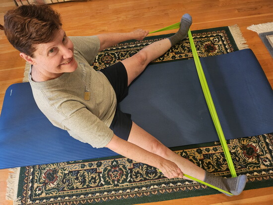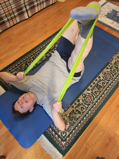 Deborah Lambert was having back pain and went to see a physical therapist. They prescribed core-strengthening exercises, which she is now doing faithfully. No special equipment was needed except for a resistance band and a soft rug or exercise mat. In addition to the stretching exercises, she, like Sharron, walks through her neighborhood most days.
