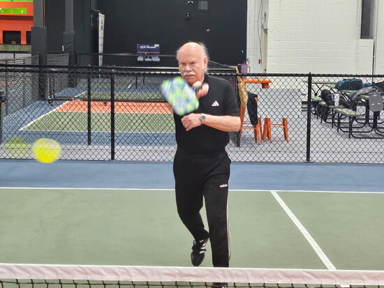 The sport swept him up instantly. “I immediately became attached to the game and quickly became an assistant volunteer coach at the Potomac Rec Center,” Dave says. He began playing several times a week on indoor courts. During the pandemic, he played outdoors at Stepanek Park in Rockville, building his skill while drawing on decades of teaching experience in both sports and the tech industry. The pandemic years only intensified his passion; by 2024, with pickleball exploding from 3.1 million players nationwide in 2017 to nearly 20 million, Dave joined Dill Dinkers, a fast-growing indoor pickleball franchise, and became a certified coach. “I’m not especially competitive; I play pickleball to have fun and get some exercise,” he admits. Whether he is eliminated in the Maryland State Senior Olympics by nationally ranked players or teaching clinics for beginners, his energy is infectious, and his lessons are built on encouragement and technique.