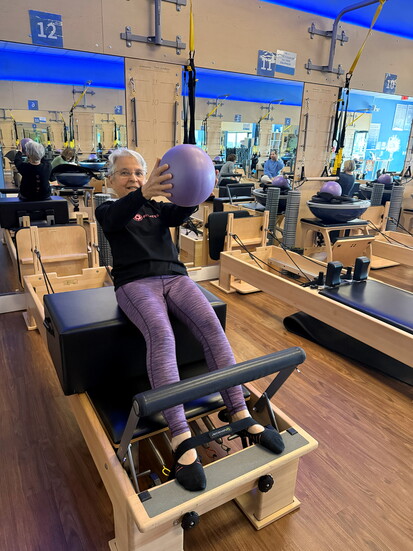 Her fitness journey began at 73 when her daughter encouraged her to try Pilates. What started as curiosity quickly evolved into a passion. “I thought Pilates might be too hard for me,” she says, “but I discovered it actually gives me energy and makes me feel capable.” She enjoys the variety of classes, taking level-one sessions to refine her form and more advanced classes to challenge her strength. The supportive instructors and welcoming studio atmosphere keep her motivated.