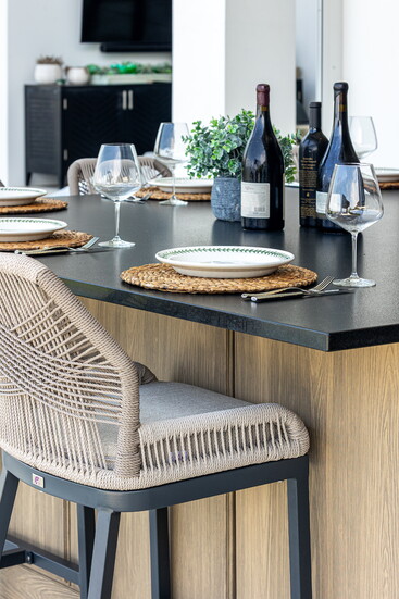 "We wanted to create a space that not only showcases the stunning surroundings but also fosters meaningful connections between people,” says Feather Nolan, one of the designers of this oasis. “By blending style, functionality and durability, we've crafted an outdoor kitchen that will be the backdrop for countless memorable moments."