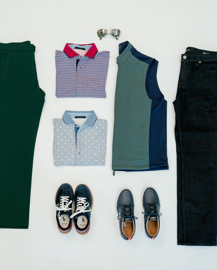 White polo: Pack Mentality Polo, Greyson Clothiers, available at Q. Contrary