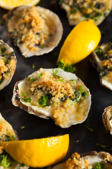 - Bake uncovered at 450° until oysters are plump, about 6-8 minutes.