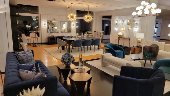 Once inside the store two adorable Bedlinton terriers, Miss Shannon and Pineapple Jack, rush to greet visitors. New shoppers may feel as though they have stepped inside a virtual Architectural Digest with its unique but full offerings of upscale home furnishings, lighting, indoor and outdoor furniture, tableware, linens, jewelry, and more! The interior is a feast for the eyes with its sparkling chandeliers and stunning displays of art.