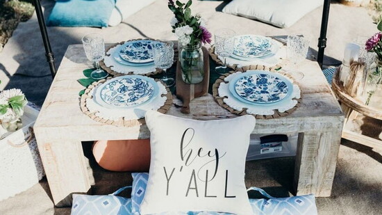 Each picnic includes a fully styled tablescape with place settings, rugs, plush pillows, fresh flowers, and themed décor. We handle everything—setup, cleanup, and everything in between. Guests simply arrive and enjoy.
