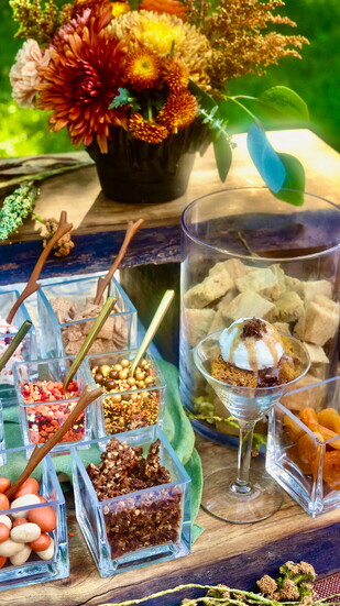 When I had my catering business, this crowd-pleasing dessert was one of my most requested. Guests heap their own mini martini glass with a variety of fall-themed cake or blondie bites, ice cream, candies, sprinkles and sauces. This year, surprise everyone with this fun ending to your Thanksgiving feast.