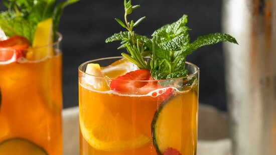 The Pimm's Cup is a classic English gin cocktail. This refreshing drink provides a sip and a snack with a generous amount of fruit in each serving. Use ginger beer or ginger ale if you want that spicy ginger taste. Muddle jalapeño in lemon juice and add to your pitcher to add some kick. Add any seasonal fruits to your pitcher - the more the merrier!