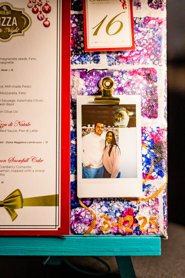 To begin with, they were greeted with a glass of prosecco as they were checked in. A fun polaroid was taken of the couple to clip to their menu at their table, a little momento of the night. As they settled in they exchanged chit chat with fellow diners before owner of the Mill, Perry Rea, began an introduction to their night of pizza. Along with the Mill's very own pizzaiolo, Augusto, they explained their dough process and how they make the pizza dough in their 'dough room', the only one of its kind in Arizona.