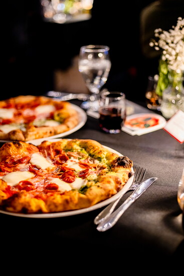Before even touching a piece of dough, diners were given a quick example of the kneading technique and advice to keep the pizza simple so that the flavors truly stand out. In addition, a wine expert from Tucson also gave a brief tutorial on the wines to be served that night including some Italian and Arizona based wines. Soon, diners got to be hands on at the pizza making station and create their very own personal pizza. Once their pizza was ready, they left staff to deliver the pizzas to the oven as they headed back to their tables for their dinner to begin.