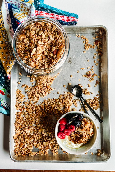 This granola recipe has been my go-to for over 20 years. I began developing it in my early days of motherhood, when life was happening fast and so much was required of me. It has stood the test of time and is now the #1 requested recipe from my people.