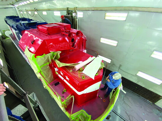 While I awaited the signing of contracts and donation paperwork, I again set my sights on the restoration of the 5704 and began contacting vendors to see what I could procure in donations. Mid-America Car (a local freight car and locomotive rebuild business) was the first to step on board and volunteered to strip, rework, and paint the unit for free. I had completed several “for pay” projects with Mid-America, doing contract work for several railroads, and they are wonderful to work with and do excellent repair and paintwork. Sherwin-Williams volunteered the paint and paint shop managers to ensure the paint was applied correctly. They also worked hand in hand with me to ensure we landed on a spot-on match for the red, white, and blue paint. There was always a Sherwin-Williams representative on site while the unit was being painted. They were wonderful people to work with!