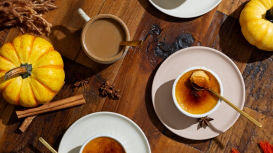 Add ¼ cup of the pumpkin cream mixture to the egg sugar mixture and whisk to temper the eggs. Slowly whisk in the rest of the cream mixture and add maple syrup. Divide the mixture among your ramekins and add them to a large roasting pan. Fill roasting pan with hot water half-way up the sides of the ramekins. Carefully place pan in oven and bake for about 40 minutes or until edges are set. Remove ramekins from pan and place on a wire rack to cool for at least an hour. Refrigerate and chill custards for at least 4 hours or overnight.