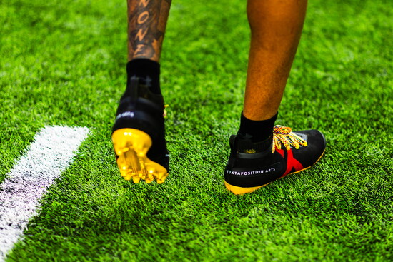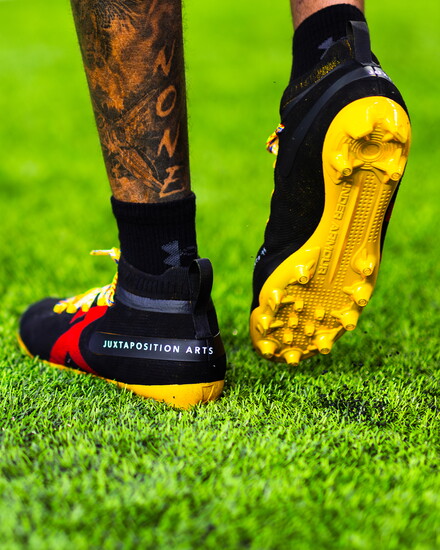 Across the Minnesota Vikings roster, that spirit of giving runs deep. In December 2024, wide receiver Justin Jefferson stepped into the game wearing cleats designed to spotlight Juxtaposition Arts, a Minneapolis nonprofit that empowers young artists through mentorship and creative enterprise. His custom pair featured a bold black base with vivid red and yellow accents, complete with bright yellow laces—a design that captured the energy of street art and the creativity Juxtaposition Arts inspires.