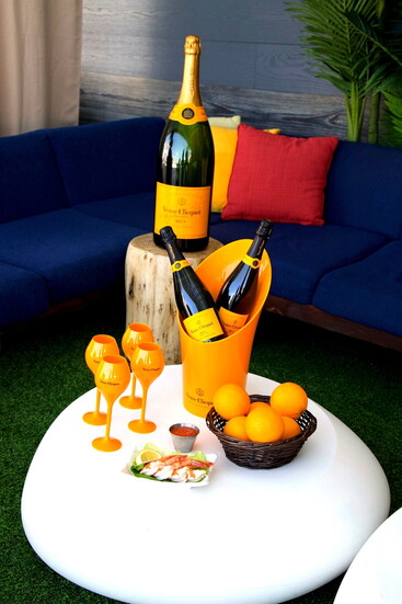 One thing I highly recommend? Elevating the pool experience with a Veuve Clicquot Bungalow. We booked one for the day, and it was the ultimate treat — comfy loungers, shaded seating, champagne on ice, and service that made it feel like our own private oasis.
