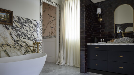 What are some design elements you’ve added to your house you’re particularly fond of? My bathroom is a favorite. The tub backsplash is an Italian marble called Monet, it has green, oxblood, brown and creams running through it and it is more beautiful than any painting I could imagine. My favorite artist and painting is Claude Monet’s Waterlilies, so apparently I am consistent in my likes. I am also deeply in love with the oxblood handmade tiles from Spain by Ann Sachs that come with their own matching crown tiles. They remind me of a 1940’s Parisian pharmacy. Tile transforms.