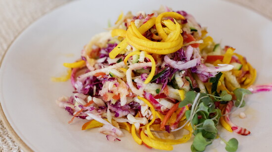 Summer calls for salad, and the owner of Santa Barbara Longevity Center, Leslie Valle-Montoya, lives and breathes healthy living even from her kitchen. Here, she shares a recipe for an ultra-healthy, super-pretty rainbow salad ripe for any day.