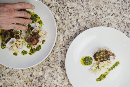 Kennon wasn’t looking to return to restaurants when Joshua Creek Ranch entered the picture. He was doing private chef work when he met Joseph Kercheville, the owner’s son, at a friend’s house. A conversation about hunting dogs led to the discovery not only of the ranch's proximity, but also of shared interests between himself and Kercehville. Once he saw it, the appeal was immediate. “We know how many people are going to be there for reservations,” he says. “It’s a set menu that changes every day, so it didn’t seem stressful.” And because guests often stay on property, feedback travels quickly. “The hunting guides come back: ‘They wouldn’t stop talking about the food,’” he says, smiling.