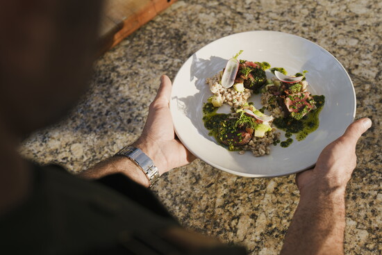 In 2019, he moved to the ranch just before the COVID-19 pandemic hit, which changed his cooking philosophy. “I refined it to make it simpler,” he says. “In fine dining, you take something that’s easy and make it as hard as possible. Here, nice ingredients are the showcase.”