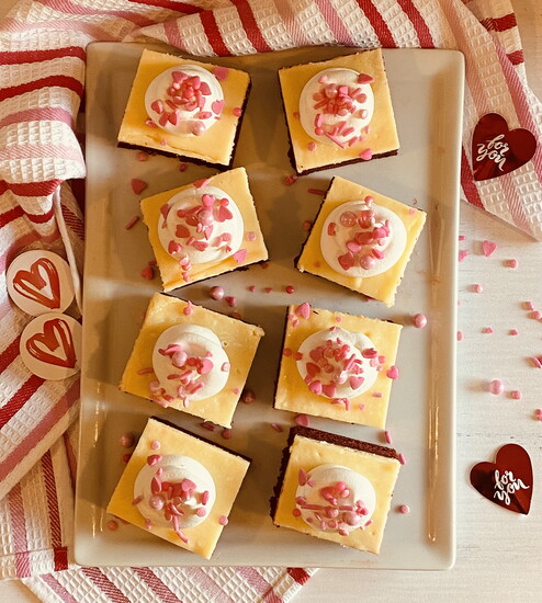 Back in the kitchen with us this month is recipe creator Gwynn Galvin of Swirls of Flavor, sharing a treat perfect for our Local Love issue. Her Red Velvet Cheesecake Brownies bring together two beloved classics—rich red velvet brownies and creamy cheesecake—swirled into one irresistible dessert. Easy to make and decadent to serve, this festive recipe is ideal for Valentine’s Day or any celebration that calls for a little extra sweetness.