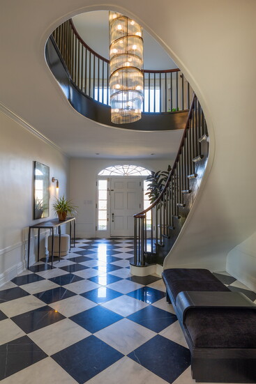 Visitors to SWTGM are greeted in the entryway by a swirling staircase, anchored by black-and-white imported Italian tiles and illuminated by a sculptural chandelier. This chandelier is a vestige of the previous owner, the late Dr. Odell Owens, former President of Cincinnati State and Hamilton County coroner. The residence was both a family home and host to luminaries, including Coretta Scott King, Rosa Parks and Maya Angelou.